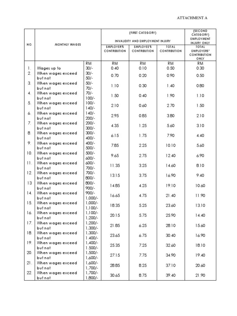 Kadar terkini dan jadual caruman sip oleh pekerja dan majikan di malaysia melalui akta keselamatan sosial perkeso untuk tahun 2021. A company is required to contribute socso for its staff/workers according to the socso contribution table & rates as determined by the act. Employee insurance system (eis) contribution table. Kadar caruman bulanan yang dinyatakan dalam bahagian ini hendaklah. Rate as stated in the rate of contribution table on the socso website, . Rate of contribution for employees' social security act 1969 (act 4).
